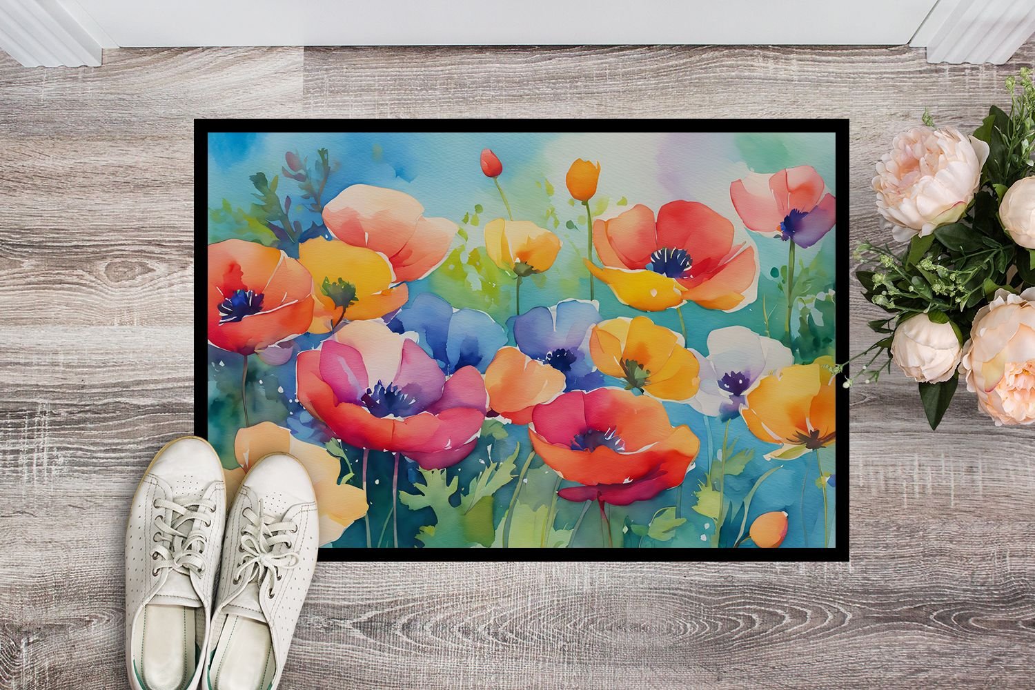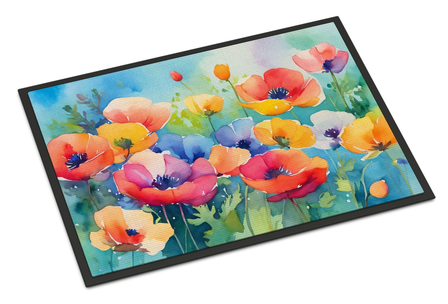 Home > NEW Anemones in Watercolor Doormat Front Door Mat Indoor Outdoor Rugs for Entryway, Non Slip Washable Low Pile, 18H X 27W
