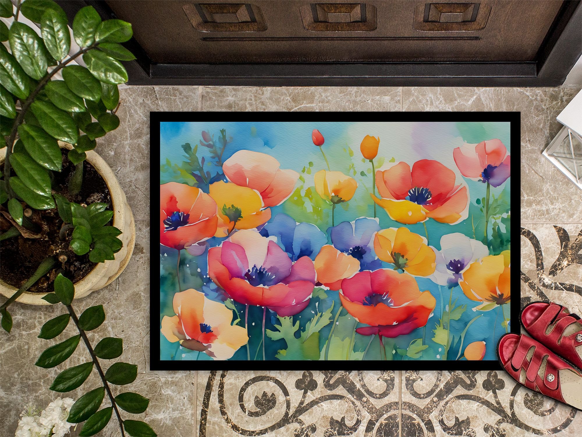NEW Anemones in Watercolor Doormat Front Door Mat Indoor Outdoor Rugs for Entryway, Non Slip Washable Low Pile, 18H X 27W