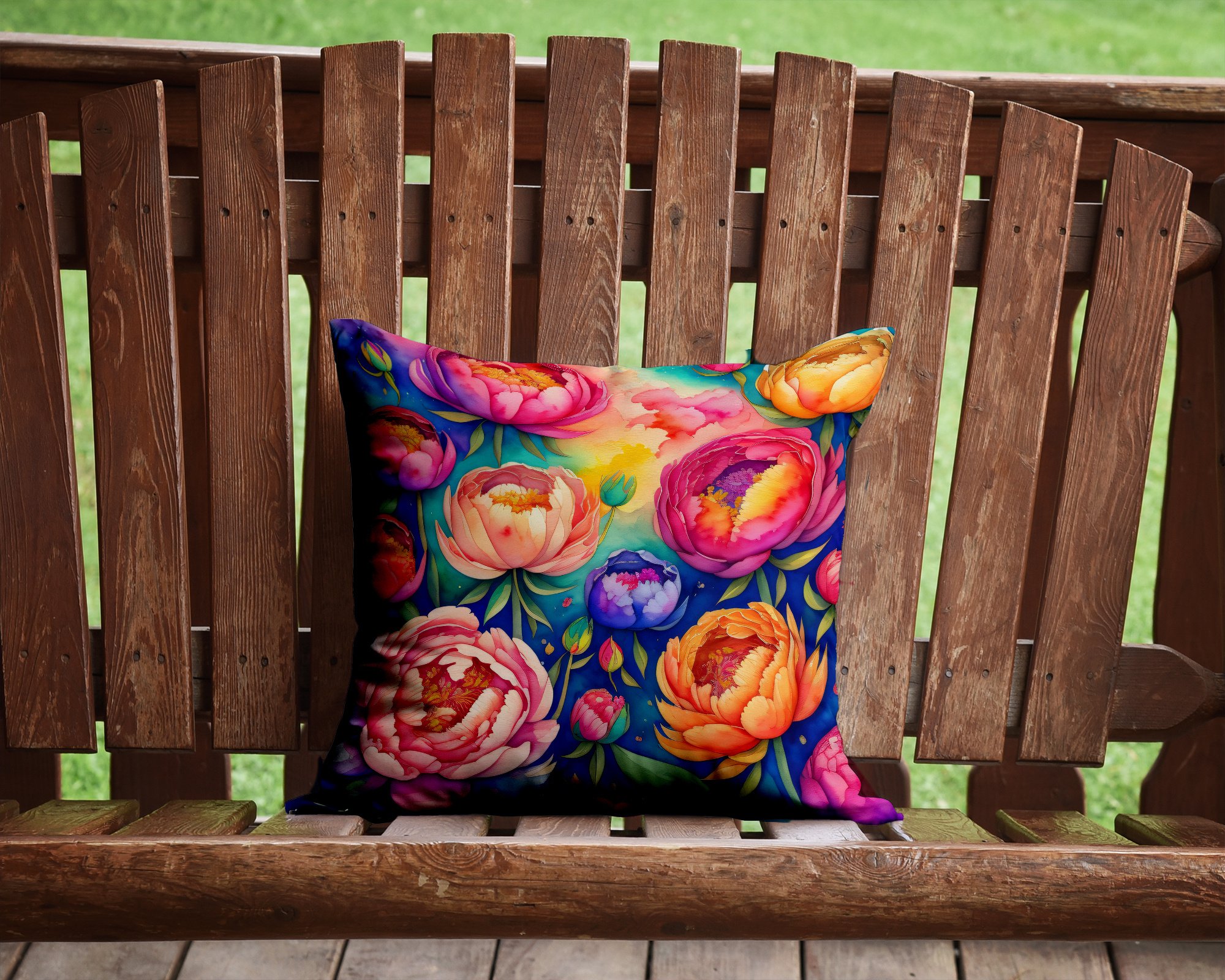 Throw Pillow featuring breed specific Peonies artwork. Add a touch of vibrancy and comfort to your outdoor seating with Caroline's Treasures Fabric Decorative Pillow. Measuring approximately 14 inches by 14 inches, this outdoor pillow is crafted to elevate the appeal of your patio furniture, infusing it with vivid color and artistic flair. The pillow includes a 100% Polyester Fabric sham filled with a quality pillow form to provide superior comfort. Innovatively made from our brand new material, specifically woven for its water resistance, this pillow is designed for durability. The soft canvas fabric offers versatility in use, fit for your indoor couch or your outdoor patio, porch, or veranda. The fabric is dyed with colorfast dyes built for resilience against weather conditions, ensuring the pillow retains its beauty over time. Constructed by sewing three fabric pieces to create a sham, the polyester insert is then nestled inside to form the pillow, resulting in an overstuffed pillow that maintains its shape. Both the sham and the pillow insert are proudly made in the United States. As the pillows are handcrafted, there may be minor variations in size, further enhancing their unique charm. Experience comfort in style with Caroline's Treasures Fabric Decorative Pillow.