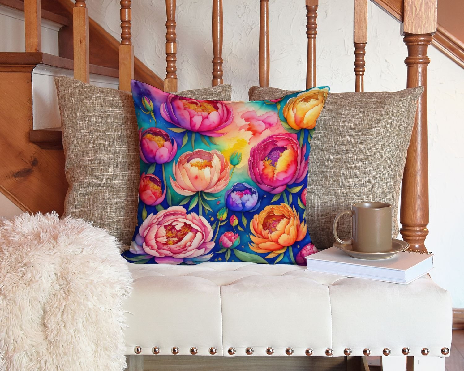 Colorful Peonies Throw Pillow Machine Washable, Indoor Outdoor Decorative Pillow for Couch, Bed or Patio, 14Hx14W Colorful Peonies Throw Pillow Machine Washable, Indoor Outdoor Decorative Pillow for Couch, Bed or Patio, 14Hx14W Colorful Peonies Throw Pillow Machine Washable, Indoor Outdoor Decorative Pillow for Couch, Bed or Patio, 14Hx14W