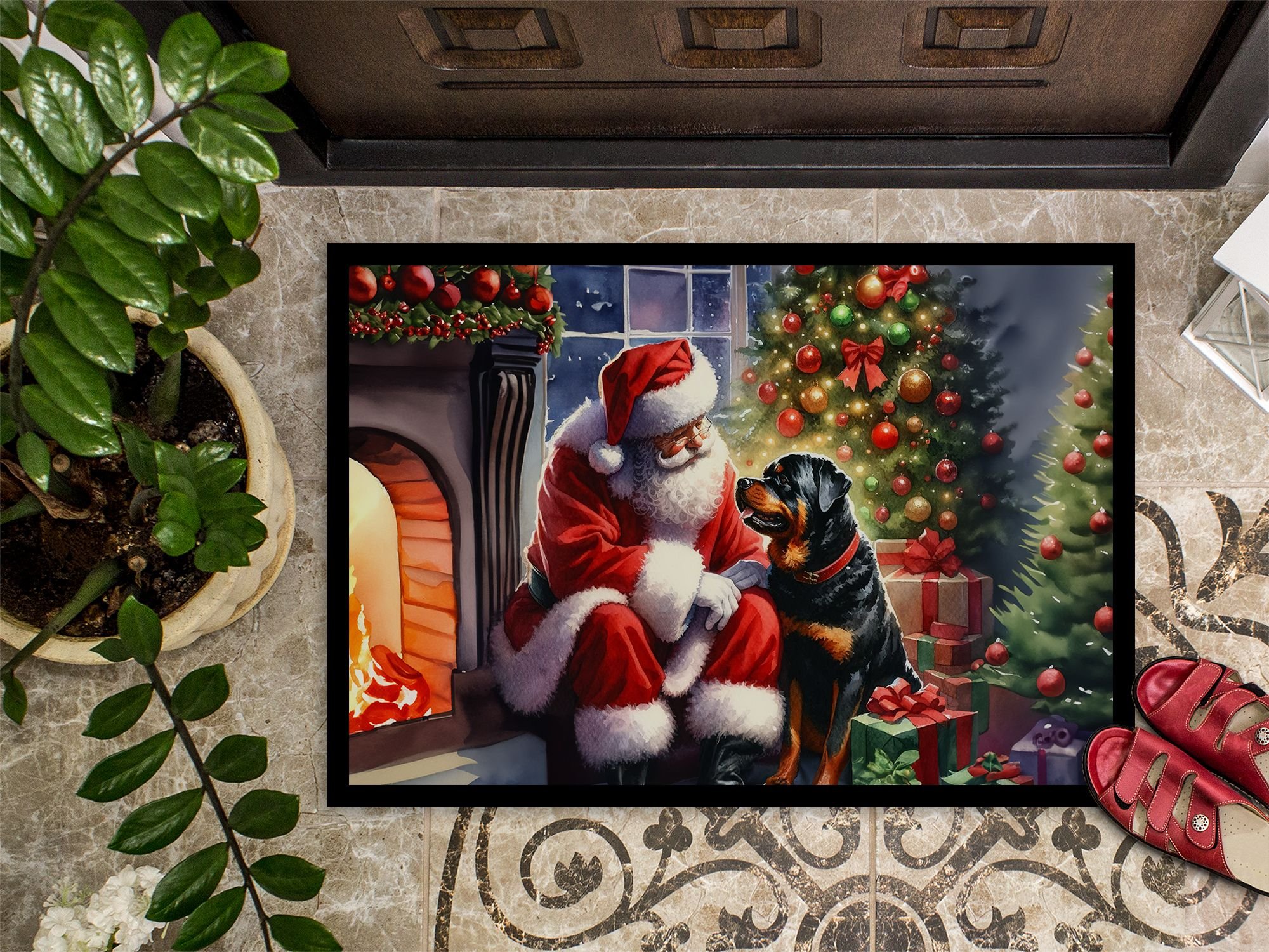 NEW Rottweiler and Santa Claus Doormat Front Door Mat Indoor Outdoor Rugs for Entryway, Non Slip Washable Low Pile, 18H X 27W